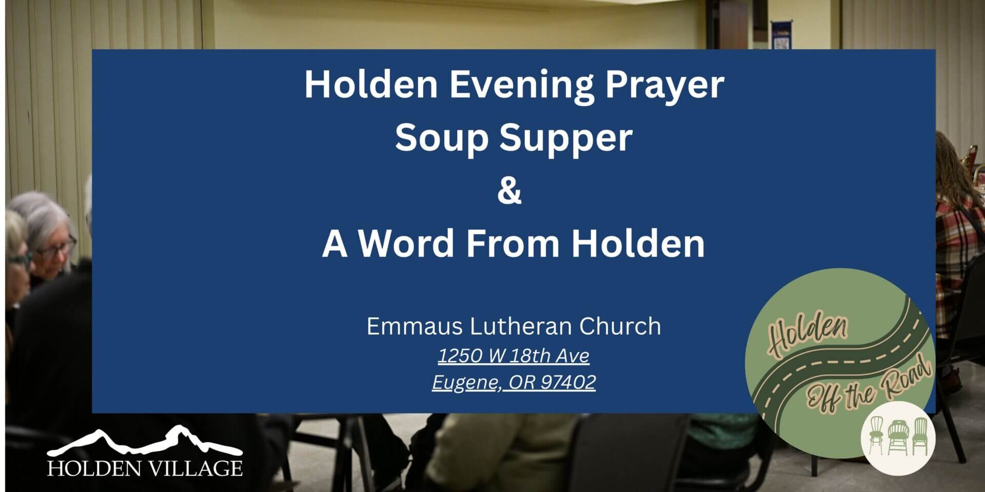 Join Emmaus Lutheran Church in Eugene, OR for Holden Evening Prayer Around the World! Emmaus Lutheran is one of over 50 congregations participating in a shared sacred space. As a bonus, visitors to Emmaus Lutheran will enjoy an 5:30 Potluck and a “A Word from Holden."